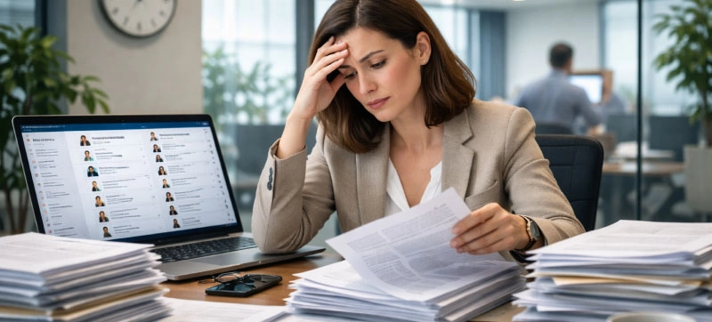 Manual resume screening is time-intensive – mostly taking 24+ hours per hire – due to high application volumes (averaging 250 plus per job), the need to manually parse varied formats, and the cognitive fatigue of reviewing resumes in bulk size. It causes bottlenecks, increases costs, and invites bias. Improvements include AI-powered tools, ATS optimization, and designed pre-screening assessments.