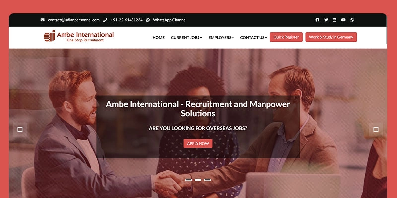 Being one of the best recruitment agencies in Mumbai, Ambe International mixes old ethics with latest cloud automation in 2026. It offers the reliability and specialized data (i.e. annual salary surveys) required to grow from Startup to a global business.