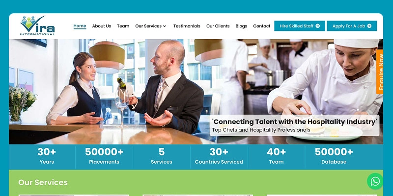 Initiated in 1991, Vira International is an ISO-certified, Government of India-registered recruitment agency now working for more than 3 decades in the hospitality staffing domain. Based in Andheri, Mumbai, they are the recommended talent partners for the world’s most iconic luxury hotel chains and restaurant brands.